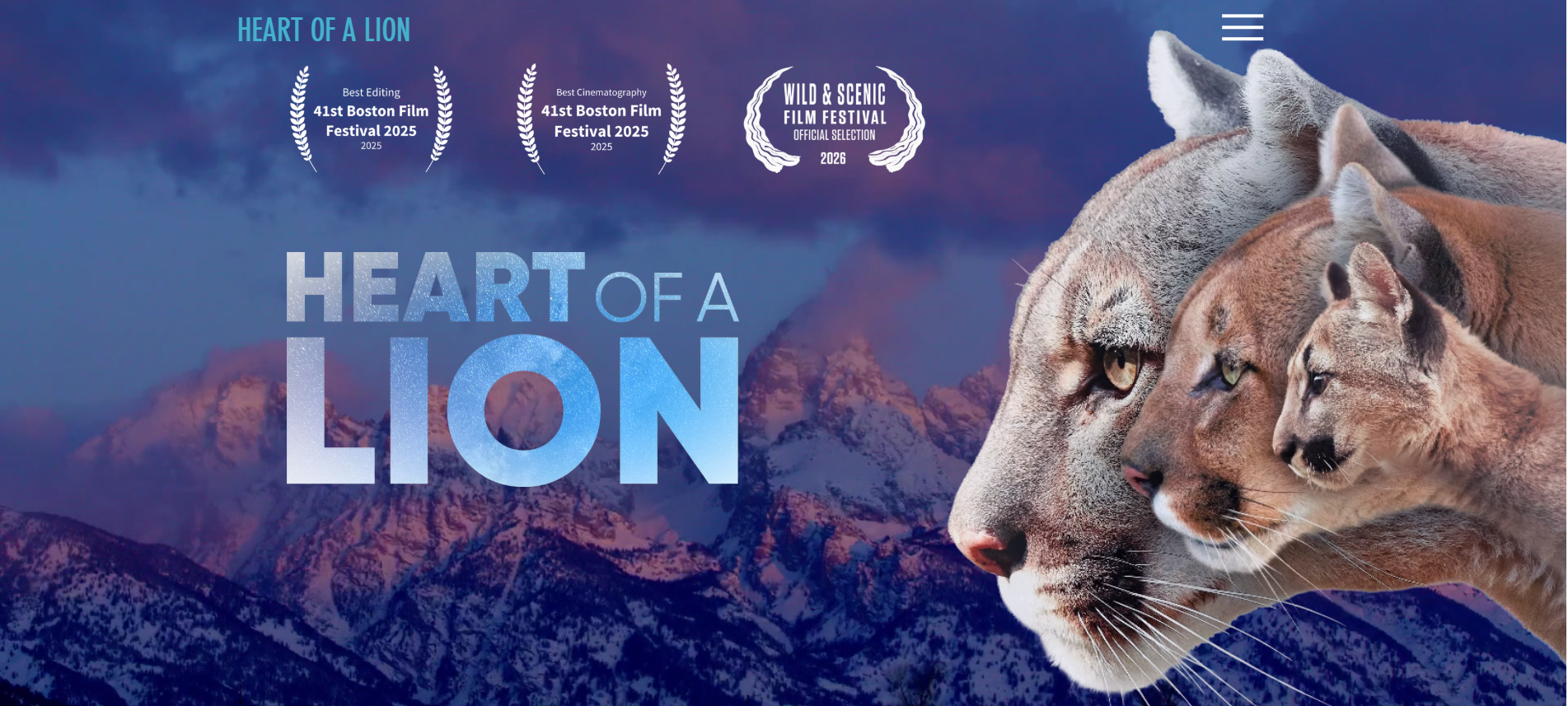 Following biologist Mark Elbroch on a sweeping journey from the rugged wilderness of Jackson, Wyoming, to the misty forests of Washington’s Olympic Peninsula, HEART OF A LION is the tale of one of North America's most often misunderstood predators. At the center of the story are two mountain lion mothers, F61 and Yoko, whose lives Elbroch has tracked for years. As his connection with these elusive cats deepens, the film reveals an intimate and rarely seen portrait of this incredible species, and explores not only the ecological role of mountain lions but also the emotional intelligence and resilience that define their lives in the wild.